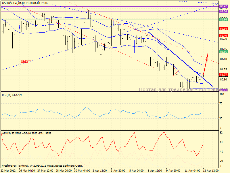 На 4х-часовом графике видно, что поддержка 80.51 устояла, отправив пару в коррекцию. Так же уже есть подобие разворотного паттерна 1-2-3, по которому (поле подтверждения) покупки от 81.07 вполне могут претендовать на профит в районе 81.60-81.80.