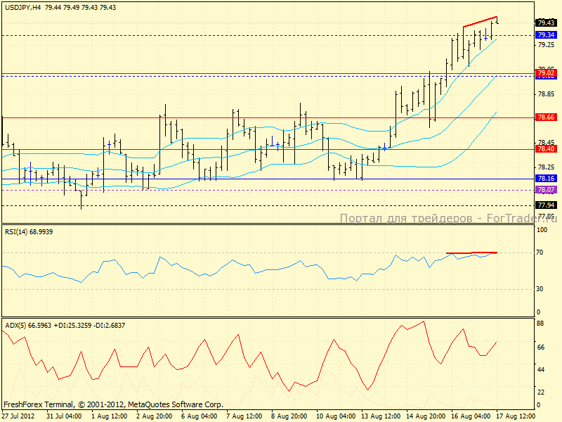 Прекрасный ап-тренд по йене, однако перекулпенность и дивергенция заставляют нас ожидать нисходящую коррекцию в район 79.02.