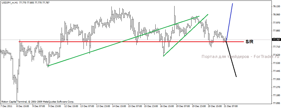 Как и предполагалось, цена после ретеста пробитой линии тренда продолжила снижение. В данный же момент на графике хорошо видно, как цена подошла к уровню поддержки откуда может начаться новое восходящее движение, или же, в случае пробоя уровня поддержки, нас ждет продолжение снижения пары.