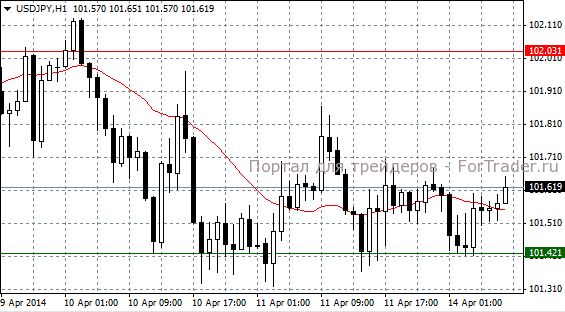 Пара USDJPY продолжает удерживаться в диапазоне 101,42 – 102,00. На сегодняшний день запланированы данные по розничным продажам в США. Если показатель отразит стабилизацию внутреннего потребления в стране, можно ждать, что цены предпримут попытку вернуться к его верхней границе. Тем более, что статистика, опубликованная в конце прошлой недели сигнализировала о том, что спад показателей был явлением временным, обусловленным плохими погодными условиями. Прорыв уровня 102,00 позволит ждать рост к сопротивлению 102,73.