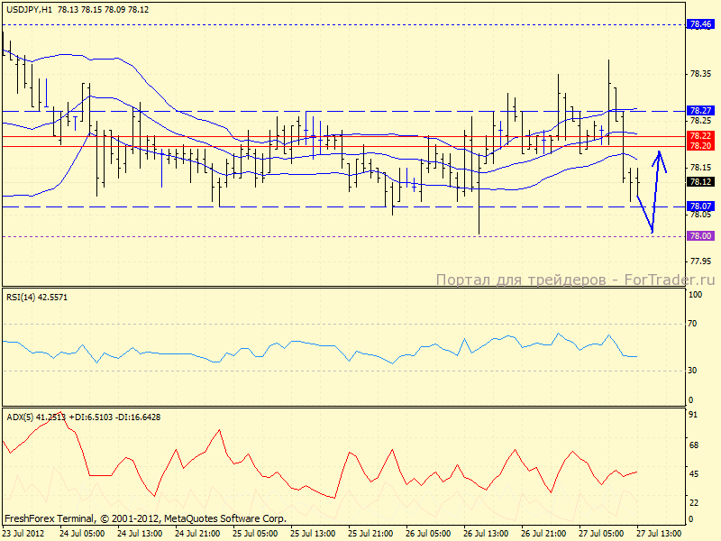 Часовой график: перепроданная пара, думаю, отскочит от поддержки 78.00 в район средней полосы Боллинджера 78.22.