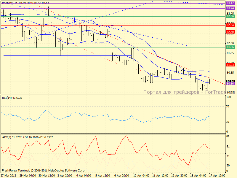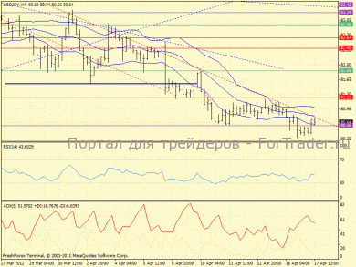4х-часовой график: пара долго не удержалась ниже ппз 80.56 и уже пробила вверх ИБ. При этом индикаторы не передают сильного давления и вполне вероятно, что цена останется в пределах бокового диапазона 80.56-81.23 с тенденцией к росту.