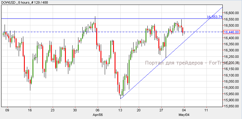 Уолл-стрит завершила торги пятницы с понижением, NASDAQ потерял от стоимости 0.19%, Dow Jones потерял 0.28%, a S&P упал на 0.13%. Согласно техническому анализу 4-часового графика, Dow упал после выхода количества рабочих мест в несельскохозяйственном секторе и неудачной попытки пробить уровень сопротивления 16,550. Если индекс удержится на уровне сопротивления, он может упасть к отметке 16,440, однако прорыв ниже этого уровня вернет пару к отметке 16,300. Тем не менее, удержка уровня поддержки и прорыв выше уровня сопротивления может привести индекс к новой вершине на уровне 16,600.