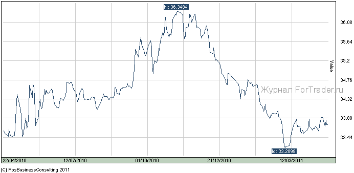 - Рубль демонстрирует уязвимость к любой мало-мальски значительной коррекции цен на рынке акций РФ, вероятность которой во 2кв2011 мы рассматриваем как высокую, учитывая завершение программы количественного смягчения в США, а также общую перегретость рынка.