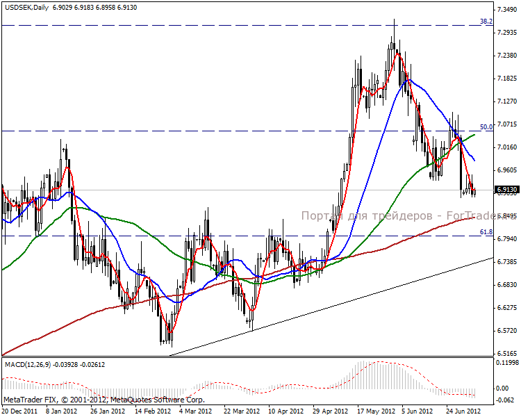 С учетом сильного американского доллара, шведская крона демонстрирует неплохую динамику движения. Недельный боковик скорректировал резкое укрепление кроны, тем самым сигнализировав о дальнейшем ослаблении доллара по отношению к шведской валюте. Крона в ходе вчерашних торгов подскочила до максимальной отметки с декабря 2000 года в паре с единой европейской валютой — до 8.64 пунктов. А ЦБ Швеции принял решение не менять ставку РЕПО после двукратного снижения с декабря прошлого года, оставив ее на уровне 1.5%.