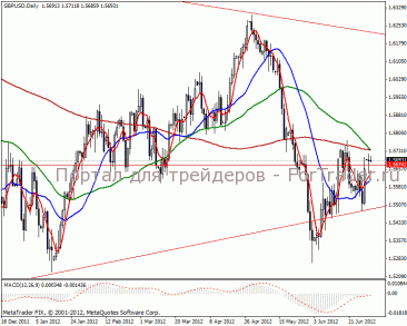 Напоминаем, что ВВП Великобритании в первом квартале 2012 года, по окончательным данным, снизился на 0.3% по отношению к четвертому кварталу 2011 года. Ранее Банк Англии объявил об экстренных мерах по поддержке экономики в условиях финансового кризиса в Европе. Британский Центробанк предоставит льготное финансирование коммерческим банкам, которые выделят национальной экономике кредиты на 80 млрд. фунтов стерлингов. В целом валютная пара gbp/usd в длительной растущей тенденции.
