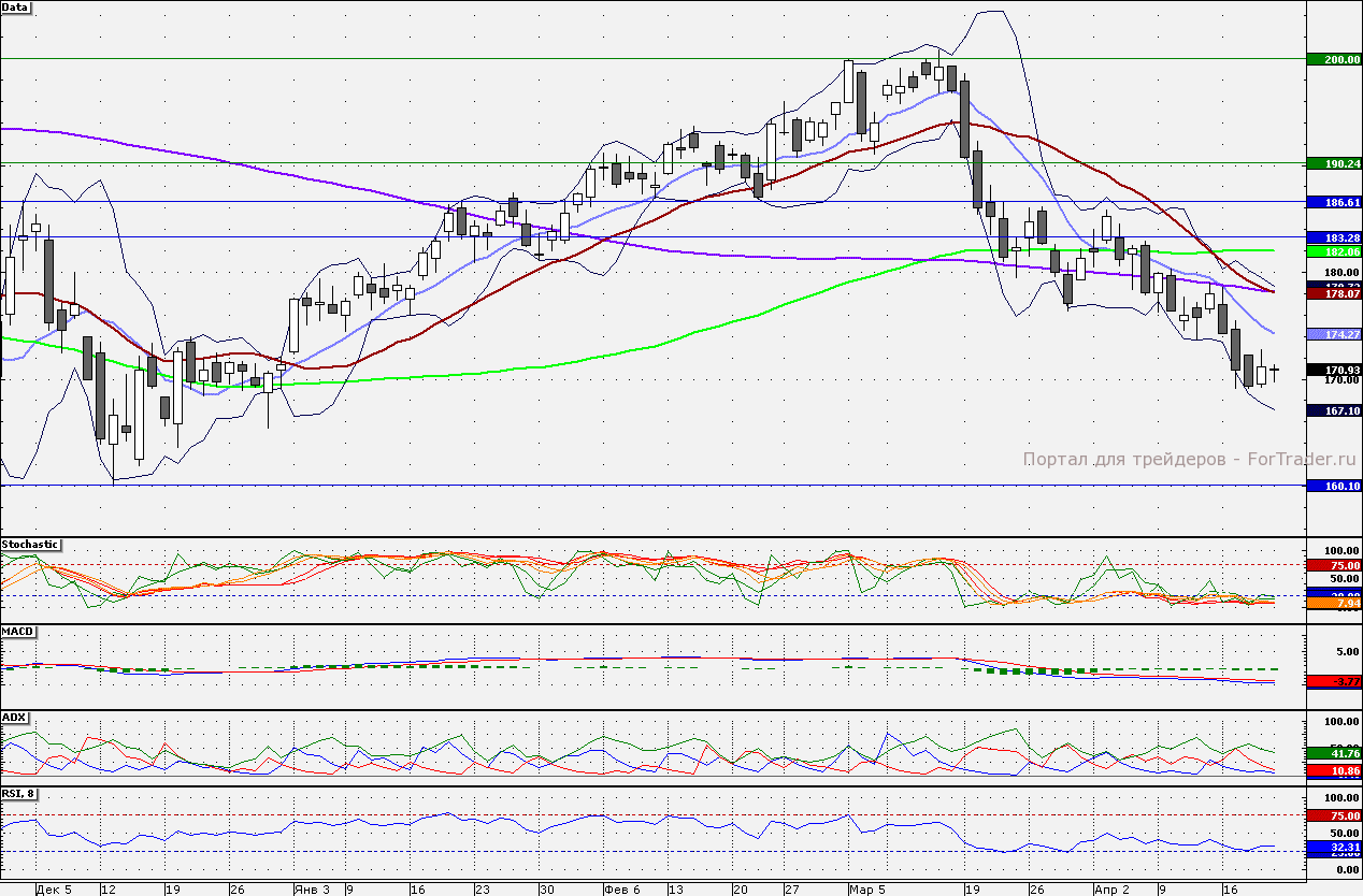 Ближайшие уровни поддержки: 170,00/165,00