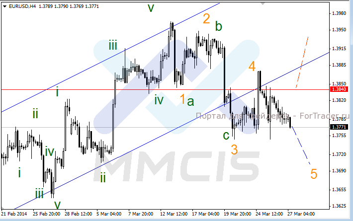 В качестве основного сценария рассматривается снижение в волне «5» к отметке 1.3700.