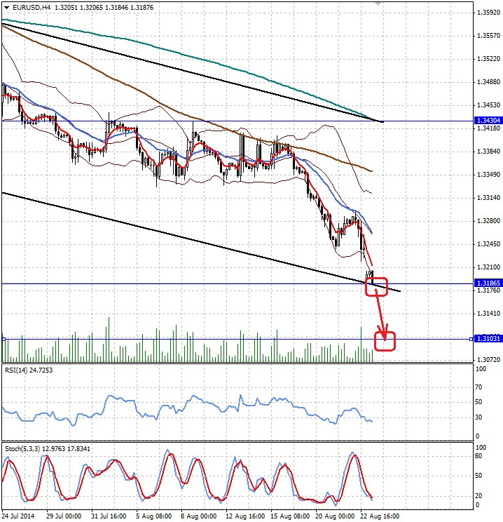 Пара торгуется в нижней границе полос Боллинджера, между SМА 5 и 21, оставаясь в краткосрочном нисходящем тренде. Прорыв уровня 1.3285 будет способствовать ее дальнейшему снижению к 1.3100. Индикаторы RSI и Stoch находятся в зоне перепроданности.