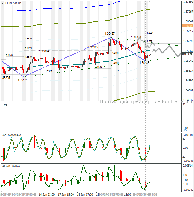Курс евро/доллар закрылся в районе 1,3598. К сожалению, у меня не получилось подгрузить последние данные за три часа (профилактические работы на серверах). Думаю, это не так важно. Сейчас для нас важнее узнать, смогут ли «евробыки» закрепиться выше уровня 1,37 или нет.