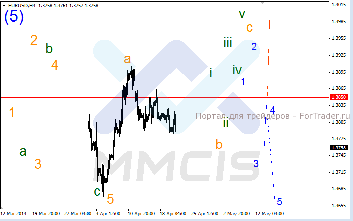 Таким образом, основной сценарий предполагает падение котировки в рамках пятой волны в район уровня 1.3650. В качестве альтернативного сценария рассматривается пробой локального сопротивления 1.3850, после чего цена будет стремиться к максимальным значениям прошлой недели.