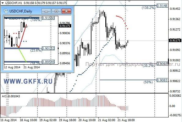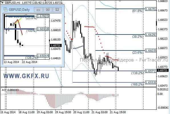 Пара EURUSD восстановила часть утраченных позиций на этой неделе на фоне фиксации части длинных позиций по доллару в преддверии выступлений глав ЦБ в Джексон Хоул. Тем не менее, вчера по доллару выходила сильная статистика, а по Европе напротив слабая, и в свете таких событий рост доллара может продолжиться в ближайшее время. Однако сегодня пара может еще подрасти в район 1,3300/10. На эту неделю традиционно рассматриваю два варианта возможного движения цены, основной красный и альтернативный зеленый. Значимые уровни на сегодня отмечены на часовом графике. Индикатор АО находится в положительной зоне и снижается, указывая на коррекцию перед возможным продолжением роста. Индикатор тренда указывает на рост. Покупки от 1,3275 с целями 1,3290 и 1,3300. Стоп 1,3267.