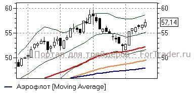 Аэрофлот (+0,95%) – акции после закрепления выше средней полосы Боллинжера дневного графика (район 55 руб) развивают восходящее движение и при этом ещё имеют потенциал роста как минимум к верхней полосе Боллинжера (район 58,7 руб) и не достигли зоны перекупленности. Технические индикаторы дают умеренно оптимистичные сигналы, не исключая развития повышения – «длинные» позиции до закрепления бумаг ниже 55 руб имеет смысл сохранять.
