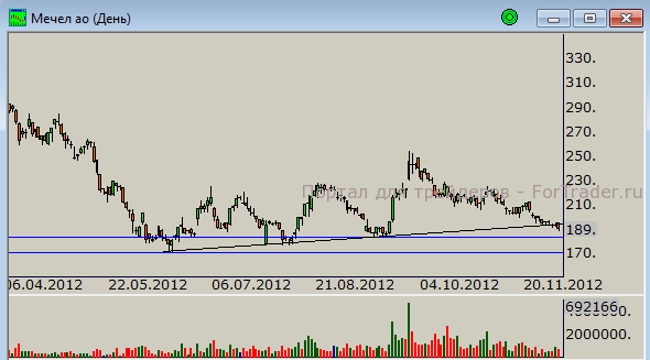 Вчера цены пробили локальный восходящий тренд. Бумага демонстрировала слабость на протяжении роста широкого рынка в последние несколько дней. Очевидно, что спроса здесь пока нет. С технической точки зрения цены теперь способны тестировать диапазон 180-170 рублей.
