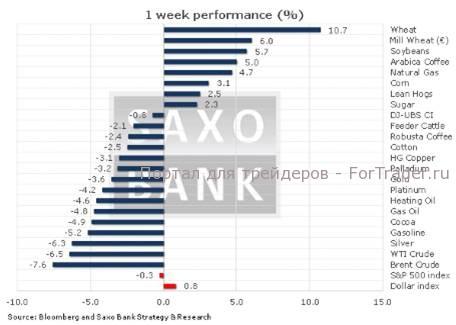 Во всем мире снижаются темпы производства. В частности, опубликованные в Китае и США данные свидетельствуют о том, что активность замедляется. Сельскохозяйственный сектор, в котором в настоящий момент движущим фактором является погода, отметился ростом, и аграрный индекс DJ-UBS вырос на 5%, тем самым, обеспечив относительно нейтральный результат для общего сырьевого индекса.