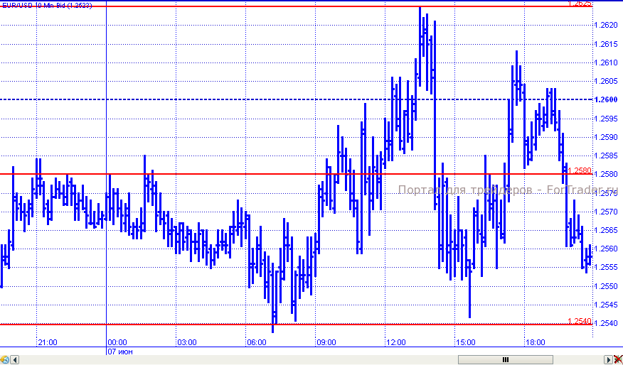 И в четверг евро не удалось определиться с направлением движения. В начале торговых суток пара откатилась к поддержке 1,2540, от которой впоследствии начала рост. В рамках восходящего движения цены смогли преодолеть сопротивление 1,2580/1,2600 и продолжили подъем к уровню 1,2625. Но заявления, сделанные Бернанке, продержали доллар и в результате цены снова вернулись к уровню 1,2540. Тем не менее, попытки восстановиться евро не оставил, но торговые сутки все же завершил ниже достигнутых максимумов на уровне 1,2560.