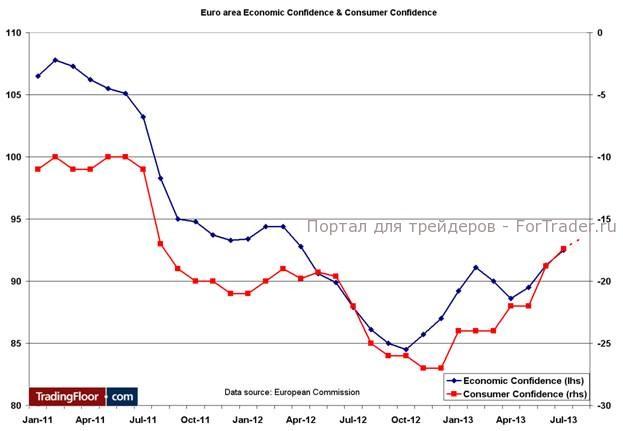 Ожидается, что потребительское доверие повысилось до уровня -16,5 по сравнению с -17,4 в июле. Данный индикатор, составленный по результатам опроса 2300 потребителей в Еврозоне, демонстрирует рост с начала года, и еще один месяц улучшения только подтвердит оптимистичную теорию о том, что экономика восстанавливается, о чем свидетельствовали опубликованные вчера индексы менеджеров по закупкам. Также рекомендую ознакомиться с отличным отчетом Мэса Кофода по июльским результатам. Для получения еще более подробной информации см. полный отчет Европейской комиссии.