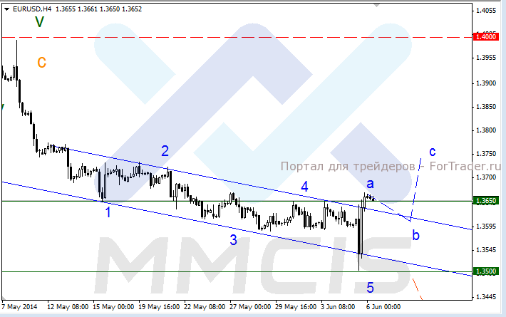 В результате активных движений, вызванных фундаментальными факторами, пара евро/доллар пробила важный уровень сопротивления 1.3650 и зафиксировалась выше. Таким образом, в скором времени может начаться среднесрочный рост. По мнению аналитиков, рынок завершил структуру падения из пяти волн, после чего ожидается формирование волн a-b-c.