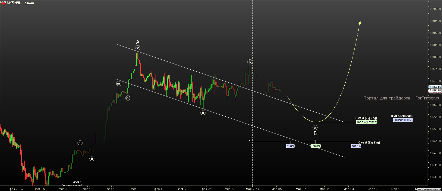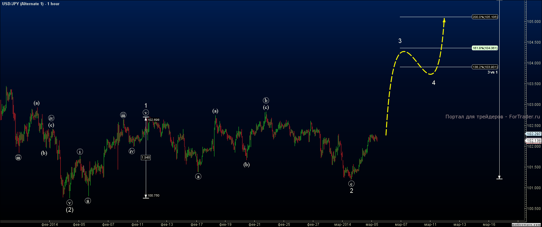 Вопреки изменению прогноза в сторону повышения, пара начала демонстрировать уверенный рост, в результате достигнув отметки 102.40. Возвращаемся к старой разметке и предполагаем продолжение роста по направлению к 104.30.