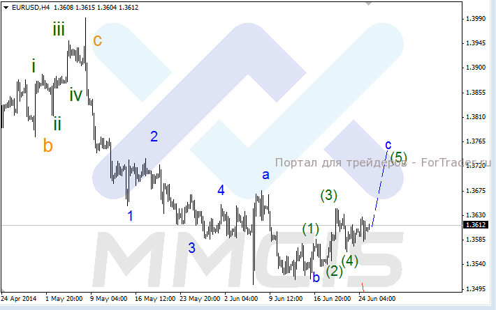 В качестве основного сценария рассматривается восходящее движение в район отметки 1.3750 в рамках волны «с». Альтернативный сценарий предполагает пробой уровня поддержки 1.3500, после чего нисходящий тренд может возобновиться.