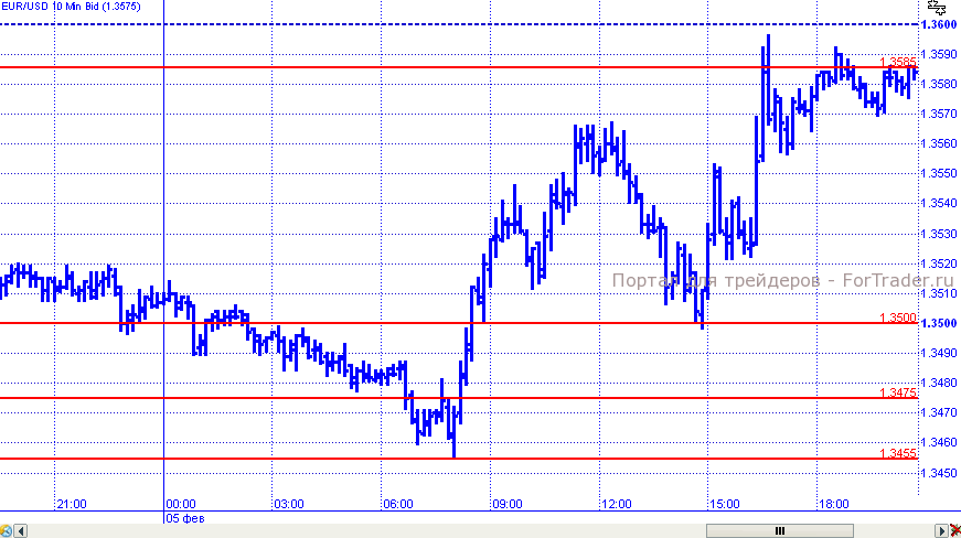 В первые часы торговых суток пара преодолела поддержку 1,35 и продолжила снижение. С легкостью был пройден и уровне 1,3475. Минимум евро/доллар отметил на уровне 1,3455, оттолкнувшись от которого, пара возобновила рост, отчасти на фоне неплохой статистики. В результате, цены буквально несколько пунктов не дошли со сопротивления 1,36, завершив день в районе уровня 1,3585.
