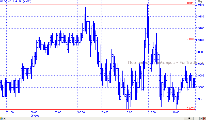 Доллар/франк и во вторник не продемонстрировала направленного движения. В течение всех торговых суток пара удерживалась в пределах узкого диапазона, ограниченного уровнями 0,9071 – 0,9115. День пара завершила в районе уровня 0,9085.