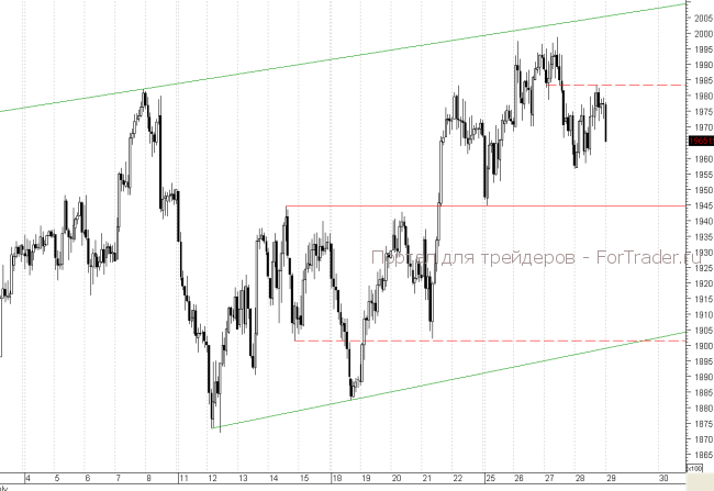 Отечественный фондовый рынок достаточно устойчиво сопротивляется внешнему негативу и не торопится падать. Отдельные акции вчера под завершение основной сессии даже пробили нисходящие уровни предложений и сформировали сигналы на покупку. Однако на графике фьючерса на индекс РТС продолжает развиваться краткосрочная нисходящая тенденция в среднесрочном и долгосрочном восходящем каналах. После вчерашнего отскока сегодня по плану предстоит продолжение снижение с целью достижения очередной локальной поддержке на отметке 194 500. Основная же поддержка среднесрочного роста пролегает сегодня в районе уровня 190 000. Ближайшим сопротивлением выступают вчерашние максимумы.