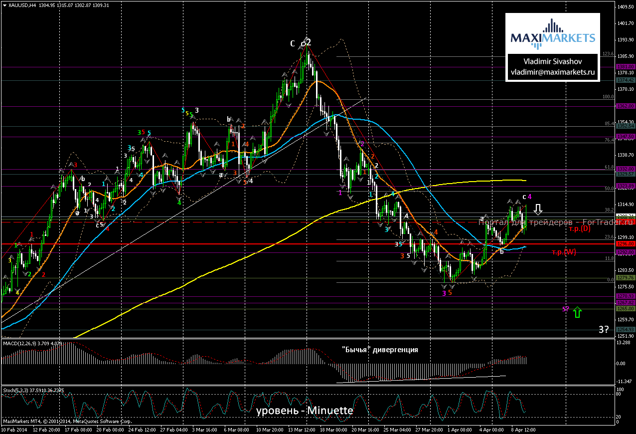 Результаты торгов в среду вновь изменили ситуацию с золотом. Краткосрочное сопротивление для этого актива переместилось на уровень 1320$ за унцию. В случае пробоя этого сопротивления ожидается восходящее движение к уровням 1325$, 1335$ и 1343$ за унцию металла. В случае разворота апрельского восходящего тренда ближайшей поддержкой для золота станет ценовой уровень 1307$. Если он будет пробит, то возможно снижение к уровням 1300$ и 1289$ за тройскую унцию. Основные уровни поддержек и сопротивлений для серебра остались без изменений. Ближайшее краткосрочное сопротивление находится на уровне 20.20$ за унцию. При восходящем движении и пробое этого ценового уровня, серебро может протестировать уровни 20.30$ и 20.70$. В случае нисходящего движения основными уровнями поддержки для металла станут 19.90$ и 19.70$ за унцию.