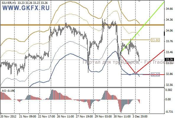 По серебру возможно красный сценарий отработает, поэтому, сегодня нужно поглядеть, как цена себя поведет у целевой отметки 32,85. Если этот уровень окажется сильным, то будем уже завтра рассматривать покупки. Индикатор АО указывает на желание снижаться, что даст возможность ценам пройти до целевого уровня. Пока вне рынка.