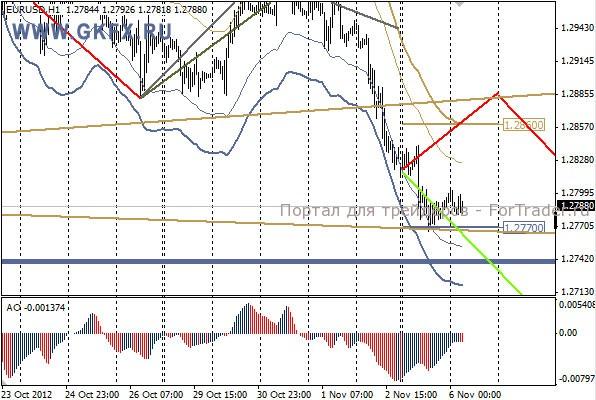 В понедельник пара EURUSD пошла по альтернативному сценарию, который для меня менее удобный, так как место для входа сложно будет найти. Этот сценарий предполагает снижение на протяжении всей недели. Я еще надеюсь на откат в область 1,2860-80, хорошее место для продаж, если фундаментальные факторы поддержат. Пока безлопастного места для входа нет. По индикатору сформировался дивер, так что вышеупомянутый откат еще вероятен. Диапазон торгов на сегодня указан на графике. На сегодня вне рынка.