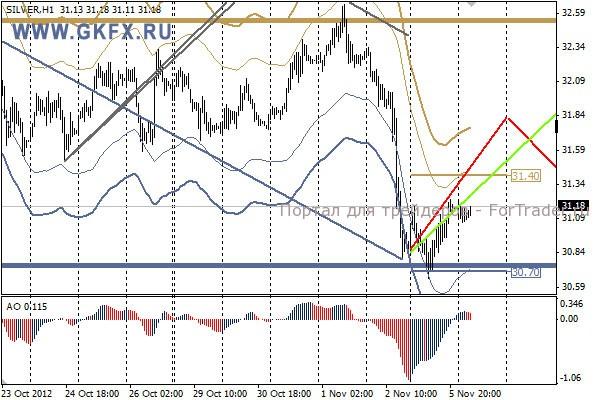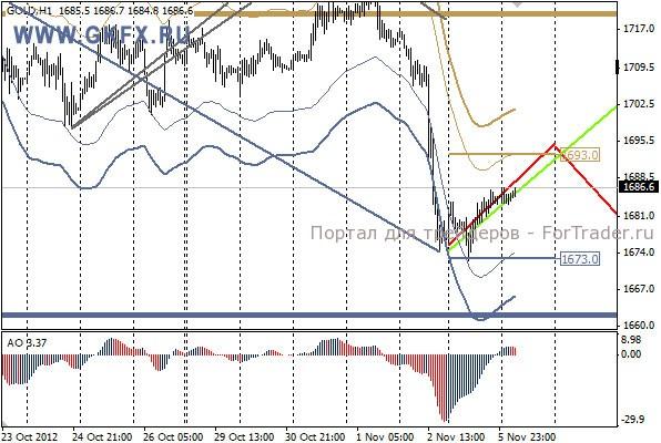 По золоту оба сценария идут в одном направлении и после вторника расходятся. Поэтому пока все по плану. Если цена приблизится сегодня к 1693,00, то завтра можно поискать вход, а какую сторону это покажут результаты выборов в США. Формация индикатора АО, указывает на хорошую продажу, но формация самой цены к этому не располагает. Диапазон торгов на сегодня указан на графике. Сегодня вне рынка.