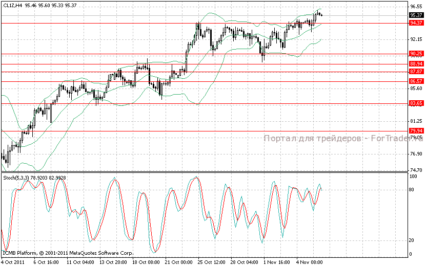 Несмотря на коррекцию евро, нефть остается на достаточно высоком уровне, что обусловлено ожиданием сокращения запасов в США и запуском в стране программы количественного ослабления. Стоит рассматривать возможность продаж при коррекции ниже 95,00 с ближайшей целью 94,37.
