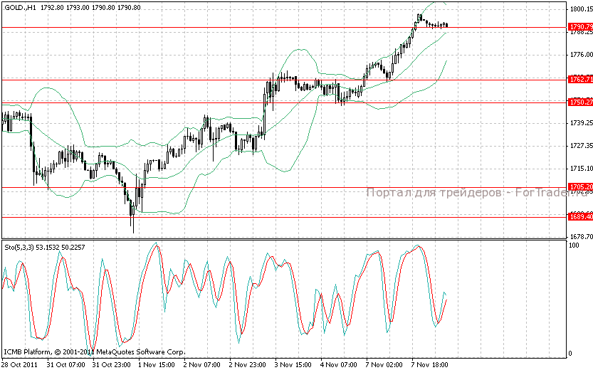 Золото уже более месяца находится в восходящем движении. Инвесторы покупают металл на фоне ожидания новых мер количественного ослабления в США и позже в Европе. Кроме того, расширение спрэда между итальянскими и немецкими облигациями снижает доверие к доходным валютам в пользу инструментов товарного рынка. Сейчас стоит рассматривать покупку от 1762,00, ожидая продолжение роста к 1800,00.