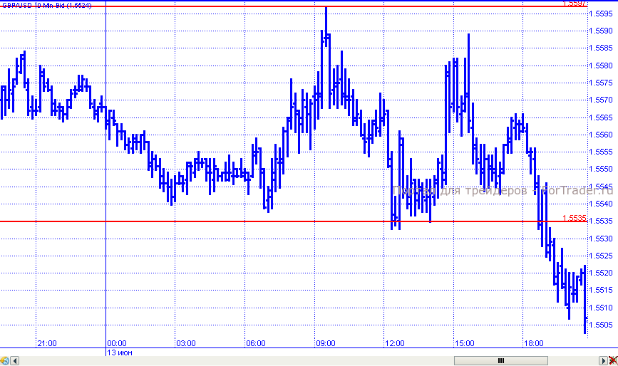 Фунт в среду демонстрировал разнонаправленные колебания, что лишний раз подтверждает неопределенность, воцарившуюся на рынке. Большую часть дня пара провела в пределах диапазона 1,5535 – 1,5597. Но ближе к завершению торговых суток все же смогла преодолеть нижнюю его границу и продолжила падение к поддержке 1,5500, в районе которой и закрыла день.