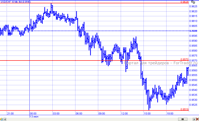 В среду некоторые потери доллар понес и по отношению к швейцарскому франку. В начале торговых суток пара попыталась возобновить рост, но выше отметки 0,9628 так и не поднялась. Начав падение, цены преодолели, хоть и не с первой попытки, поддержку 0,9570 и продолжили движение вниз, отметив внутридневной минимум на уровне 0,9519, от которого к завершению дня цены откатились к уровню 0,9560.