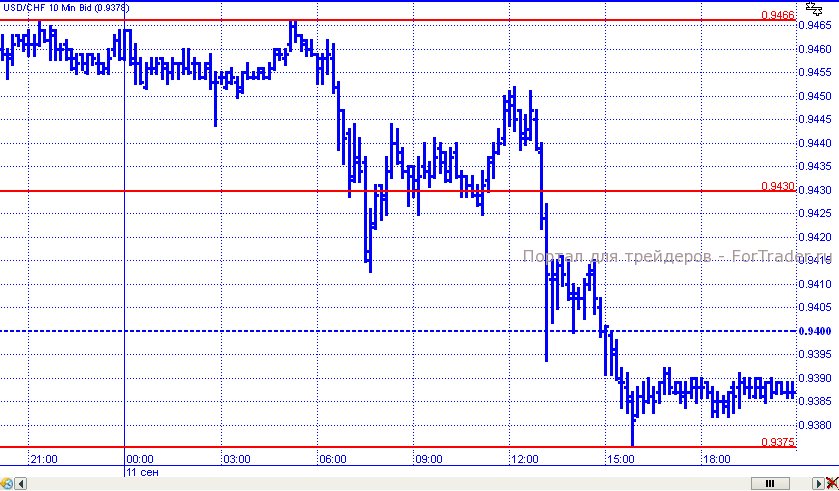 Доллар/франк традиционно стал зеркальным отражением динамики пары евро/доллар. Цены начали падение, в рамках которого смогли преодолеть поддержку 0,9430 (хоть и не с первой попытки) и продолжили движение вниз. Зафиксировавшись ниже уровня 0,9400 пара отметила внутридневной минимум на уровне 0,9375, от которого к закрытию откатилась на несколько пунктов вверх.