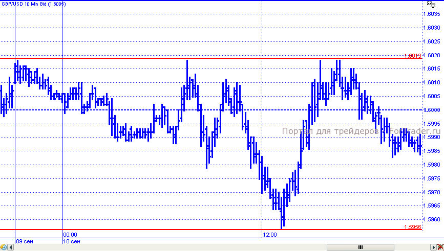 В понедельник пара демонстрировала разнонаправленную динамику. После краткосрочной консолидации в пределах диапазона 1,5990 – 1,6019 цены устремились вниз и достигли внутридневного минимума на отметке 1,5956. Но развить нисходящее движение дальше им не удалось и пара вернулась к отметке 1,6019. Но торговые сутки пара завершила все же ниже уровня 1,6000 на отметке 1,5985.