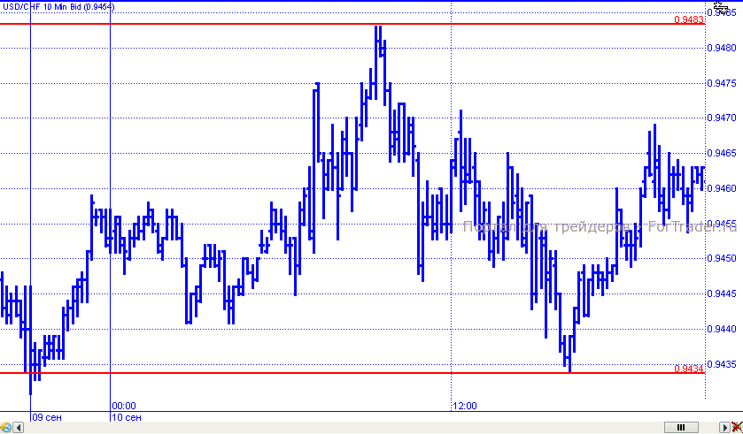 Пара доллар/франк не отличалась в понедельник оригинальностью. Цены также консолидировались в пределах неширокого диапазона 0,9430 – 0,9483. Обновив внутридневной максимум на уровне верхней границы канала, пара устремилась вниз. Но к завершению торговых суток цены все же восстановили часть позиций и закрылись в районе уровня 0,9460.
