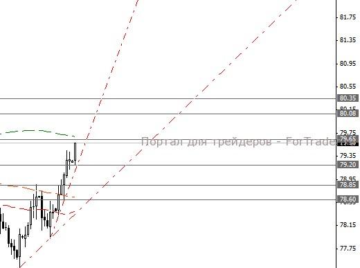 Пара USD/JPY ограничена сопротивлениями вблизи 79.65, 80.08 и 80.35, а также поддержками 79.20, 78.85 и 78.60.