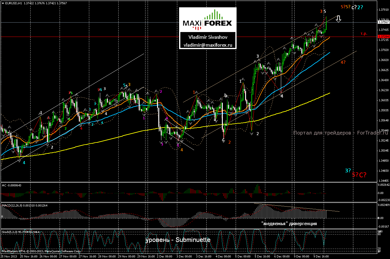 Опираясь на данные отчёта по американскому рынку труда, инвесторы сделали вывод, что здоровье мировой экономики – в порядке, и в этой связи, планируемое сокращение монетарных стимулов в США не помешает экономическому оживлению ведущих экономик мира. Этот вывод подтвердили также и сильные данные по китайскому экспорту, опубликованные в воскресенье. Кроме того, дополнительными поддерживающими факторами выступили — новости из Франции о том, что Индекс деловых настроений в ноябре месяце вырос до 101 пункта, превысив при этом прогнозы аналитиков, а также — германский профицит торгового баланса. Таким образом, финансовые рынки с оптимизмом восприняли перемены в мировой экономике, что спровоцировало очередную волну покупок рисковых активов. На этом фоне, пара отыграла на торгах в пятницу и в понедельник, классический сценарий «carry-trade», когда сильные новости из США вызывают рост фондовых рынков и ослабление доллара в пользу конкурентных валют и, в частности – единой европейской валюты. Курс пары, в ходе вчерашних торгов, достиг новых 4-х недельных максимумов, зафиксировав закрытие американской сессии на отметке 1.3737.