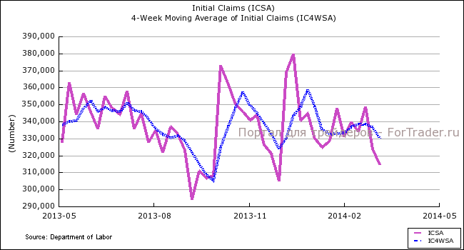 Доллар снижался в первой половине дня, обновив минимумы года по индексу доллара, но затем отыграл всё снижение, закрывшись почти без изменений после выхода сильных данных по США. Число первичных заявок на пособие по безработице в США на прошлой неделе снизилось на 9 тыс. до 315 тыс. — минимума с конца ноября прошлого года, тогда как ожидался рост заявок до 330 тыс. Среднее число заявок за последние 4 недели снизилось с 336,75 тыс., до 330,5 тыс.