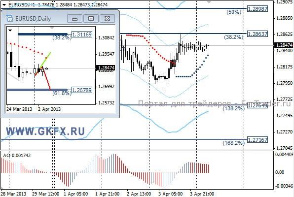 Пара EURUSD перед заседанием ЕЦБ немного выросла в цене не позволив заработать. По вчерашней рекомендации сработал стоп -10 пунктов. Будем пытаться зайти снова. Вчерашний рост евро можно объяснить слабой статистикой по США. В результате доллар утратил часть позиций. Все эти движения, дела одного дня. Основной тренд вниз, поэтому пытаемся продавать. Сегодня состоится заседание ЕЦБ, а после него выступит президент ЕЦБ Драги, вот это выступление и ожидается больше всего. Традиционно рассматриваю два варианта возможного движения цены, основной красный и альтернативный зеленый. Значимые уровни на сегодня отмечены на часовом графике. Индикатор АО в положительной зоне и снижается, указывая на коррекцию перед возможным дальнейшим ростом. Индикатор тренда указывает на рост. Войдем против индикаторов. Sell от 1.2860 или выше со стопом 1,2880. Цель 1,2790.