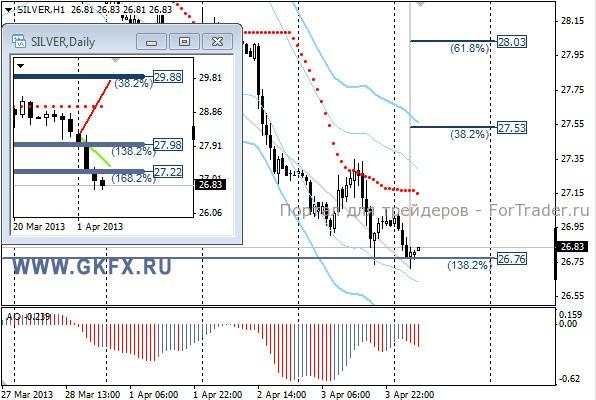 Цены на золото продолжили снижаться на фиксации длинных позиций. Золото теряет популярность и снижается в цене и если будет пройдена поддержка на уровне 1520-1530,0, которая держится с сентября 2011 года, тогда откроются цели намного ниже. На дневном графике традиционно делаю два варианта движения цены на неделю, основной красный и альтернативный зеленый. Значимые уровни на сегодня отмечены на часовом графике. Индикатор АО в отрицательной зоне и снижается, указывая на желание инструмента идти вниз в данное время. Индикатор тренда указывает на снижение. Безопасного места для входа в данное время нет.