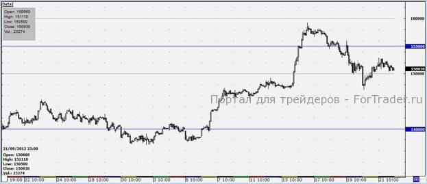 Говоря об опционах, следует сказать о максимальных объемах открытого интереса по страйкам. На текущий момент максимальные количества контрактов открыты в октябрьских опционах put со страйком 150 000 пунктов и call со страйком 155 000 пунктов. Именно на этих уровнях наблюдается опционная поддержка и сопротивление соответственно. В более дальние по сроку экспирации опционы ликвидность пока еще не перешла.