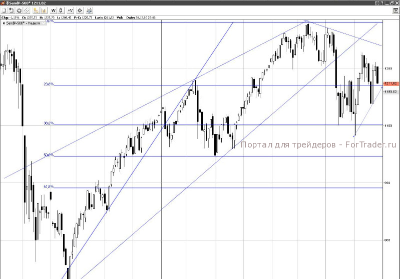 Сегодня перепроверяли все с моими учениками. Нефть, болтаясь от 111 до 98 долларов за баррель, не интересна – этот диапазон отыгран и предсказуем. Золото в ответственной фазе, важный рубеж для «быков» — 1560 долларов за унцию (восходящий тренд 2008 года), но есть и рубежи 1530 долларов и психологическая метка 1500 долларов. Индекс Dow Jones в диапазоне 11570-12480 тоже не стимулирует. А вот S&P, конечно, висит на ниточке над уровнем 1200-1190 пунктов, но это — поддержка. Что дает вам право думать, что она скорее проломится, нежели устоит?