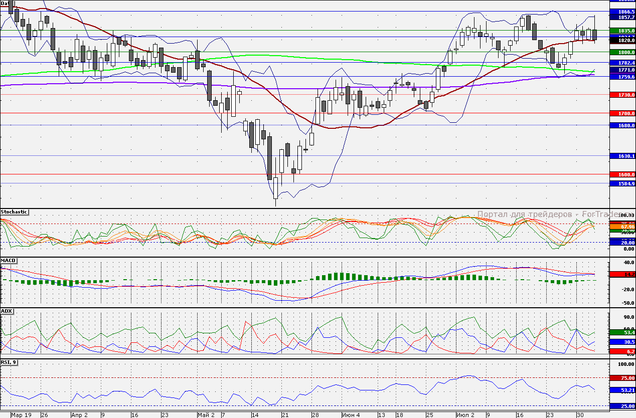 Ближайшие уровни сопротивления: 1835,00/1850,00/1865,00