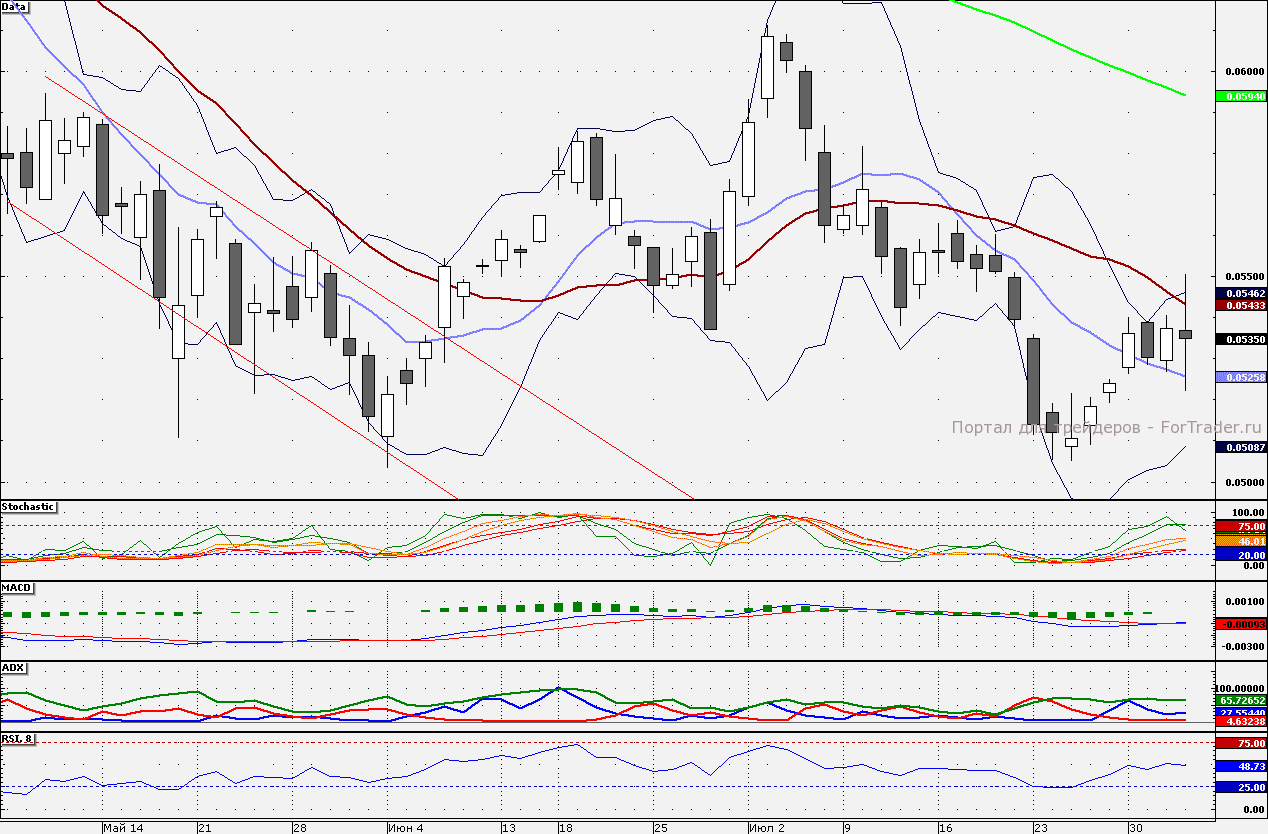 Акции ВТБ вновь удержались выше 5,3 коп. Сегодня акции могут перешагнуть 5,4 коп. Основным сопротивлением является 5,5 коп., от данной отметки «лонги» стоит сокращать. Поддержкой является 10-дневная скользящая средняя – 5,258 коп.