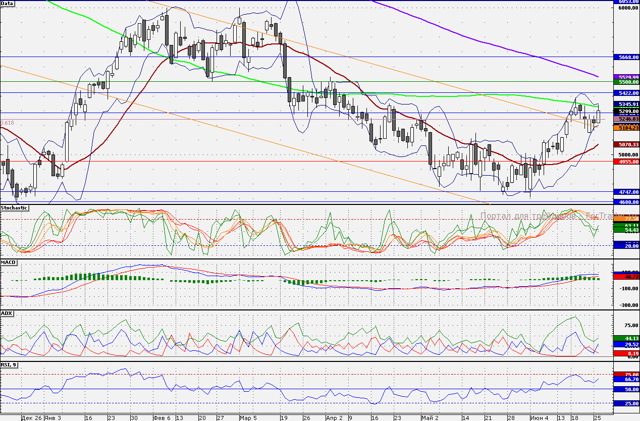 Ближайшие уровни сопротивления: 5350,00/5400,00/5500