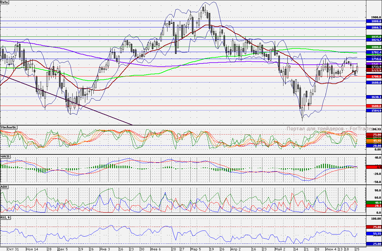 Ближайшие уровни поддержки: 1730,00/1721,90/1700,00/1680,00