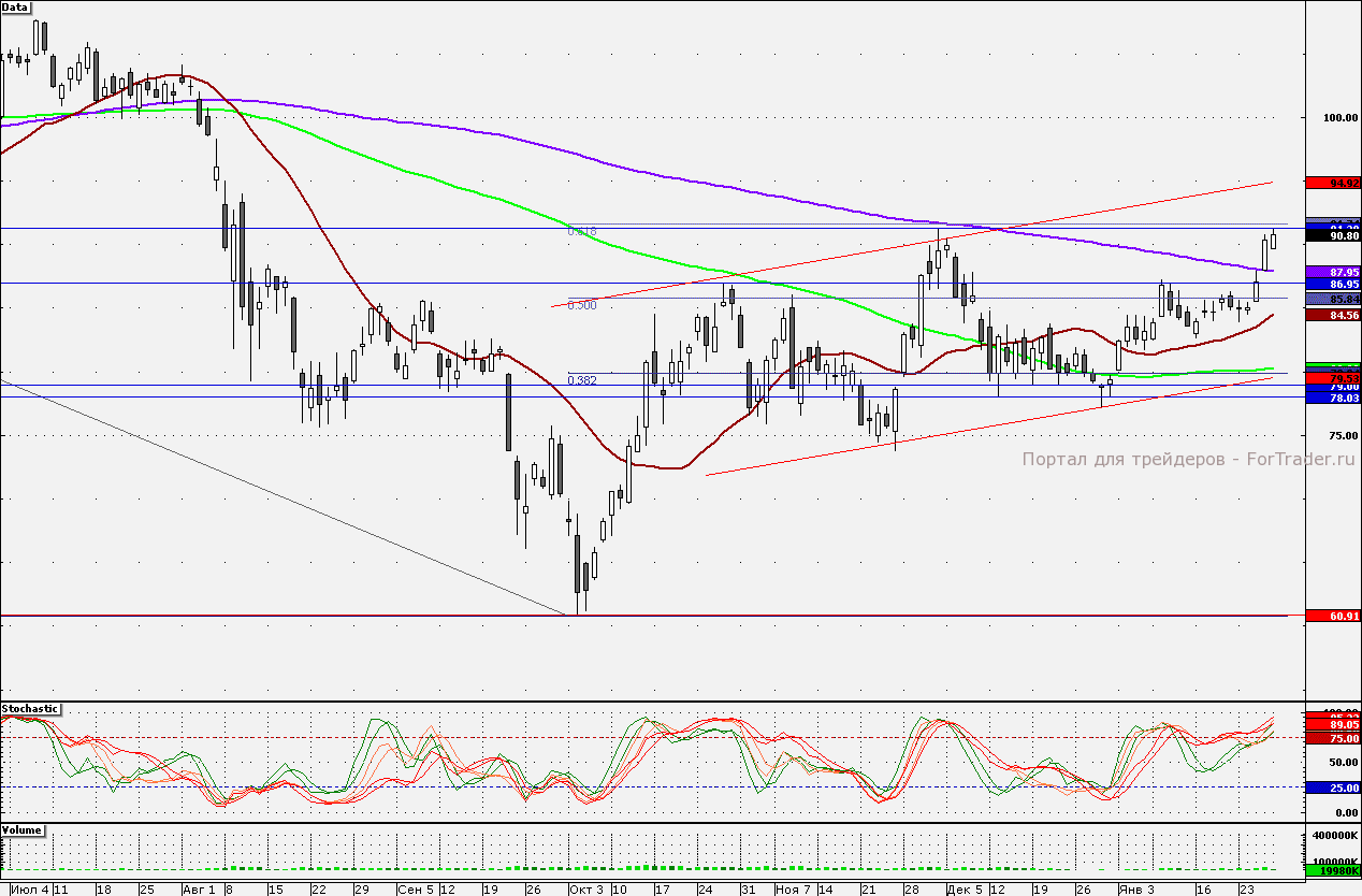 Ближайшие уровни поддержки: 90,00/87,95/87,05/85,00/84,00